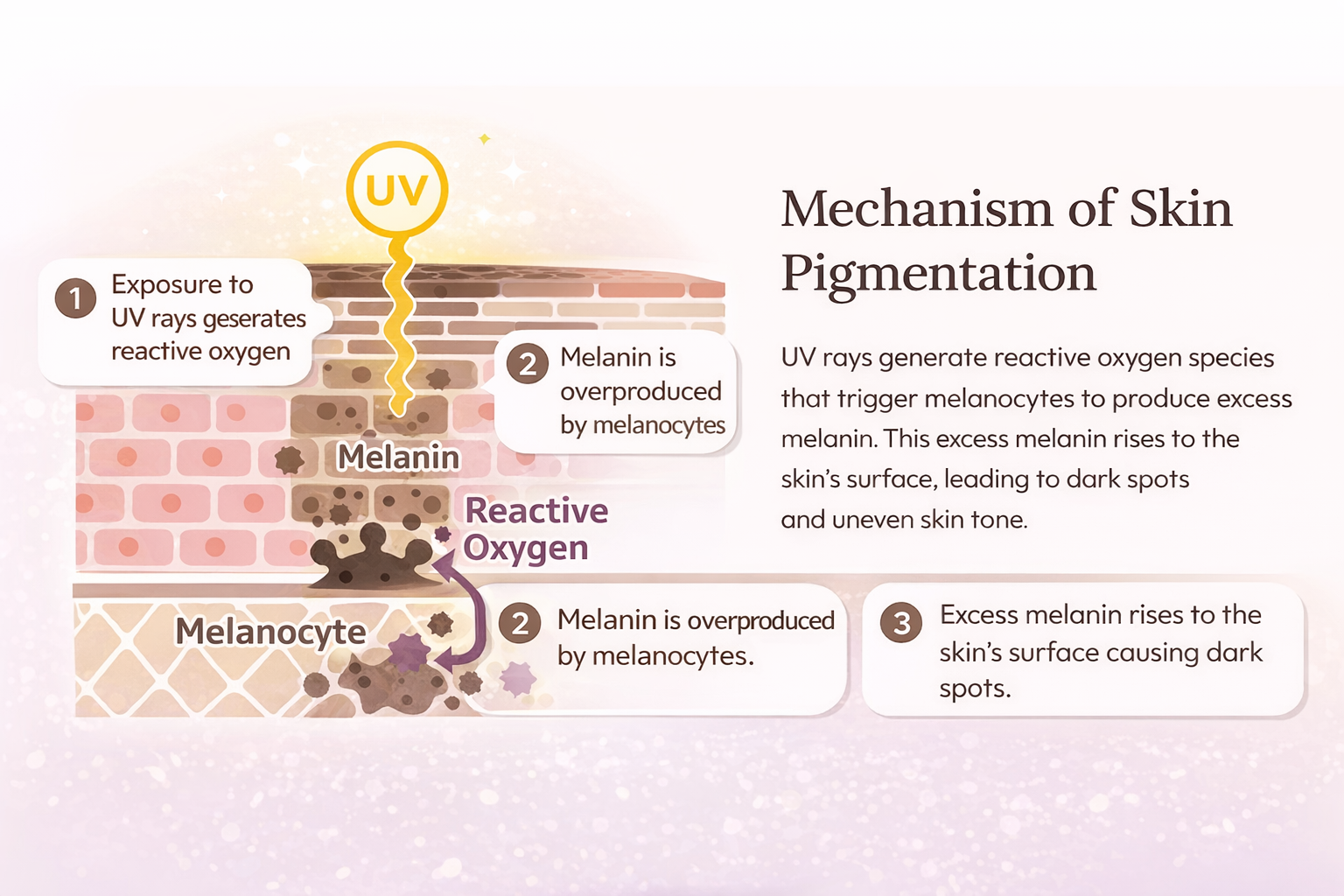 NAC is a key precursor to glutathione production in the body. It helps support antioxidant levels, cellular renewal, and natural detox processes, which play an important role in maintaining skin vitality.
